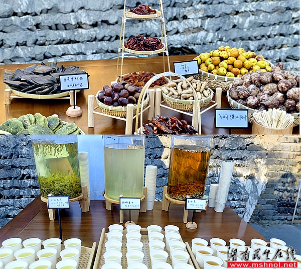 研讨会上,来自全国各地的专家学者提交了100余篇论文,其中54篇入选会议。这些研究成果为南洞的红色历史提供了更丰富的学术支撑。 “这些墙面上的彩绘保存得如此完整,虽历经岁月有斑驳,但每一块青砖灰瓦都在诉说着历史。”一位来自北京的教授连连称赞。这时,工作人员端来了用山泉水冲泡的葛根茶,教授接过品了一口,惊喜地说:“这茶清香甘醇,与这厚重的历史建筑相得益彰。” 参观间隙,南洞乡特意为专家学者们准备了地道的茶歇。用山泉水冲泡的金银花茶清香四溢,野生蜂蜜水甘甜润喉,刚蒸好的糍粑软糯可口,还有淇江特产的鱼干令人回味无穷。