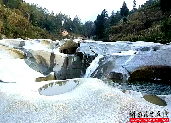 对我而言,穿过弥漫着历史烟云的韩家院子,脚下的小径便将我引向了舅舅家所在杨的冲。冲前是个小田垅,形如舟船,被两条清亮的小溪包裹着。这“船”里一年四季都有水浸着,是种稻物和高麻荪的好地方。河对岸是唐家湾,名虽如此,却无一户唐姓,全姓吴,这也是老地名留下的一个谜。从杨的冲到过山丘垅里,是一条扁担宽的石板路。对面竟又是一个船形状的田垅,被大河与小溪环绕。这里藏着一个更古老的传说:很久以前,一位皇帝乘轿从麻塘山下来,见此地形,大惊失色,慌忙下轿,拜了三拜,叹道:“此地风水太恶,若出人才,必乱皇位!”直至走到水口山,望见那断崖瀑布一泻如注,他才长舒一口气,惋惜雾茅洞的灵秀之气终究被这“水口”泻走了。这宿命般时叹息,仿佛至今仍在田垄的水光间隐隐回荡。