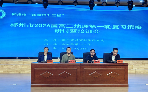 2025年9月24日,湖南省郴州市“质量提升工程”——2026届高三地理第一轮复习策略研讨暨培训会议在永兴县第二中学举行。本次活动汇聚了来自郴州市8个县的252名高三地理教师。永兴县教育局正科级干部刘智荣出席开幕式。永兴二中党委书记马国雄在开幕式上致欢迎辞。