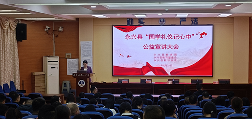 9月25日上午,来自湖南省永兴县各中小学的152名教师齐聚永一中学学术报告厅,聆听湘南学院马丽萍讲师作 “国学礼仪记心中”公益宣讲报告。此次活动由郴州市教育基金会主办、永兴县教育基金会承办。