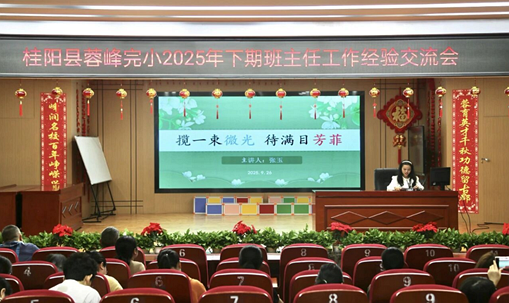 9月26日,桂阳县蓉峰完小全体班主任齐聚多功能报告厅,参加学校组织召开的2025年下期班主任工作经验交流会。该校党总支书记黄中美、副校长欧阳广出席会议并讲话。