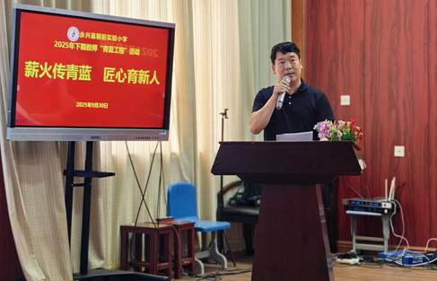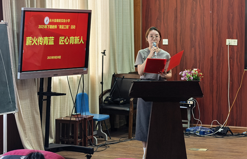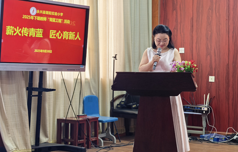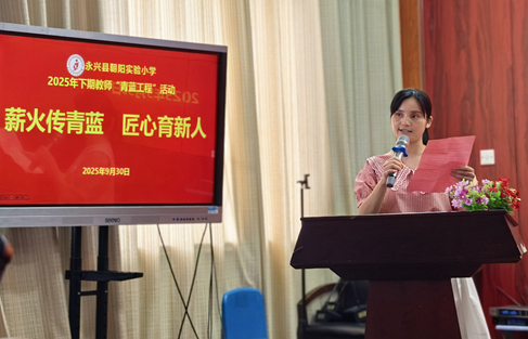 9月30日下午,永兴县朝阳实验小学在五楼多媒体教室举行2025年下期“青蓝工程”师徒结对仪式。校领导李荣钢、马阔飞、黄艳芬,全体指导教师及新进教师参加活动。