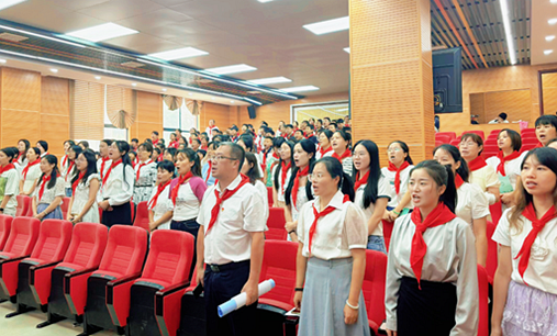 2025年10月13日上午,永兴县龙山小学以一场庄严而热烈的“强国复兴有我 争当新时代好少年”主题宣讲暨中队辅导员培训活动,为中国少年先锋队建队纪念日献礼。永兴县教育局副局长罗莹、共青团永兴县委副书记彭蓉到场指导。
