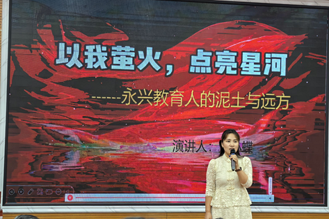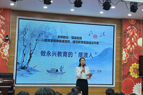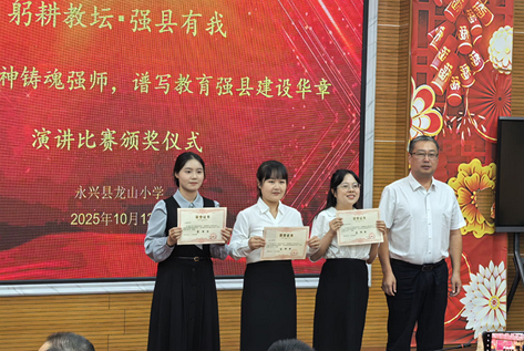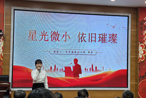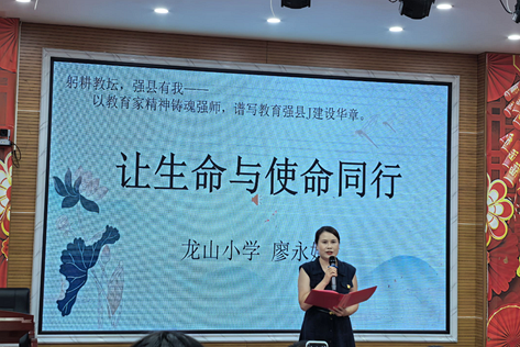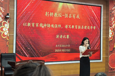 10月13日,湖南省永兴县龙山小学在一楼多媒体会议室举行“躬耕教坛·强县有我”教师演讲比赛。此次活动旨在弘扬教育家精神,增强教师的职业荣誉感与使命感,展现学校教师队伍的专业素养与精神风貌。该校全体教师齐聚一堂,共同参与并见证了这场充满激情与思考的教育盛会。