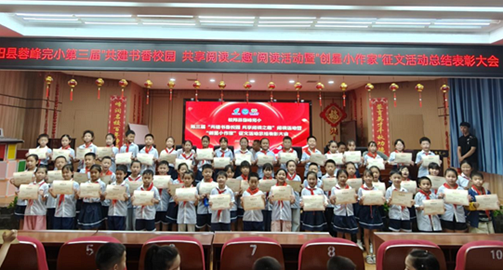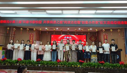 10月13日,桂阳县蓉峰完小第三届“共建书香校园·共享阅读之趣”阅读活动启动仪式暨“创星小作家”征文活动表彰大会在该校多功能报告厅隆重举行。郴州市邮政分公司市场部项目经理张瑾、邮政业务部副经理胡声刚,桂阳县邮政分公司总经理王雄,《课堂内外》杂志社湖南省区域经理韩波,蓉峰完小党总支书记黄中美、校长唐湘斌、副校长龙海星及获奖师生参加活动。