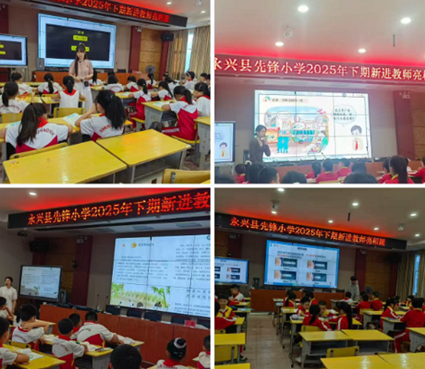 10月11日和14日,永兴县先锋小学举办“2025年下期新进教师亮相课活动”。五位新教师登台授课,全校教师到场听课,学校领导全程参与并评课,现场洋溢着浓厚的教研氛围。