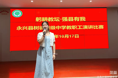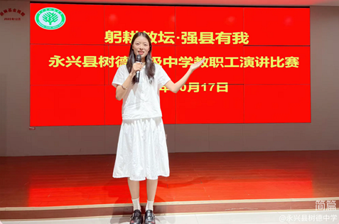 日前,湖南省永兴县树德初级中学在学校会议室举行了一场主题为“躬耕教坛,强县有我”的教职工演讲比赛。