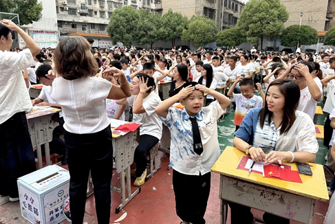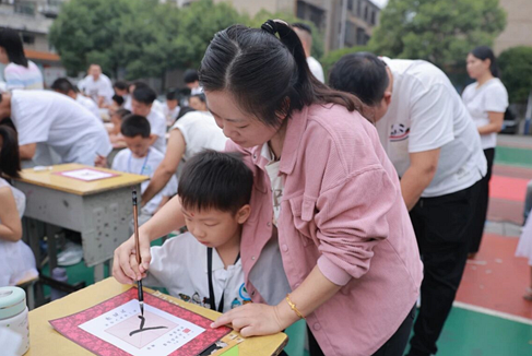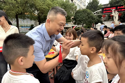 ![]() “开笔礼”活动由少先队大队辅导员徐世炫主持。别开生面的“重走长征路”拉开活动的序幕。孩子们手持小红旗,在家长和老师的陪伴下,依次走过象征瑞金、金沙江、遵义会议会址等革命圣地的打卡点,最终在启智门前完成“吴起镇会师”。并再跨过“启智门”,依次触摸代表好运的物品。这独特设计,将爱国主义的种子和温暖的期望悄然播撒在孩子们心间。 ![]() 接着,雷韫瑂、蒋小双、雷轶凡、邓美玲四位老师为现场师生及家长献唱歌曲《天地龙鳞》。悠扬的旋律、深情的歌声,唱出了对家国的眷恋、自豪和青少年的慷慨壮志,点燃了全场热情,为庄重的仪式注入了青春活力。 ![]() 随后正式进入“开笔礼”各环节。第一个环节是“正衣冠”。老师和家长引导孩子自正衣冠、互正衣冠,让孩子们在调整着装中领悟“先正衣冠,后明事理”所蕴含的礼仪与庄重。第二个环节是“拜师礼”。全体师生首先面向孔子行三拜之礼,然后孩子们集体面向老师行拜师礼,老师们躬身回礼,一举一动间,尊师重道的传统在鞠躬中得以传承。第三个环节是“朱砂启智”。学校领导和老师用鲜红的朱砂在学子们的额头点上“智慧痣”,寓意开启智慧、耳聪目明。第四个环节是“开笔破蒙”。李海洋老师指导孩子执笔书写“人”字,一撇一捺,领悟“做人正直”的真谛。第五个环节是“击鼓明志”。邓文舒老师击鼓领誓,学子齐声回应:一击鼓,孝敬父母;二击鼓,尊敬师长;三击鼓,继承传统;四击鼓,为校争光。随后,邓文舒带领孩子们齐诵《三字经》。稚嫩的诵读声中,先贤的智慧滋润心田,文化血脉得以延续。 ![]() ![]() ![]() ![]() ![]() “开笔礼”各个环节完毕后,邓敏老师带领四年级2202班同学上台表演课桌舞。孩子们用指尖在课桌上击打出韵律,身体随节奏摇摆,朝气与传统相碰撞,展现了新时代少年积极向上的精神风貌。 ![]() 在场家长被学校精心策划的“开笔礼”活动深深感染。2507班家长代表陈红艳在发言中说:“愿孩子们以开笔礼为起点,心怀感恩,脚踏实地,书写属于自己的精彩人生!” ![]() 唐湘斌校长为本次活动致辞。他敦敦教诲孩子们:做一个善良的孩子,尊敬师长、孝敬父母、关爱同学;做一个勤奋的孩子,认真学习、积极思考、勇于探索;做一个阳光的孩子,热爱运动、喜欢劳动、乐观向上;做一个有担当的孩子,遵守纪律、团结协作、乐于奉献。唐校长希望孩子们珍惜学习时光,在老师的悉心指导下,在家长的温暖陪伴下,茁壮成长、天天向上。 ![]() 最后,全体家长与孩子们共同制作“心愿卡”,写下对未来的美好期望,并封存于“心愿箱”中,为孩子成长注入动力。