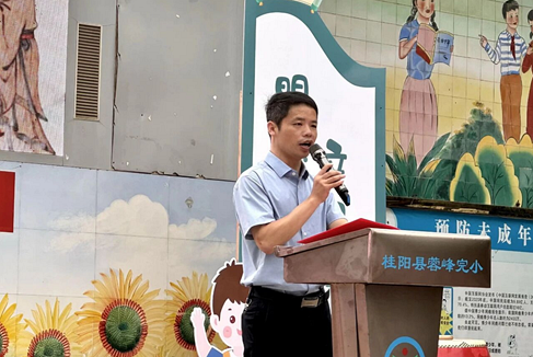 9月19日上午,桂阳县蓉峰完小隆重举行以“开笔明礼启新程 童心向阳共成长”为主题的2025年秋季一年级新生开笔礼。该校党总支书记黄中美、校长唐湘斌带领一年级全体教师和家长,通过一场充满仪式感的启蒙活动,为孩子们开启求学之路的新篇章。