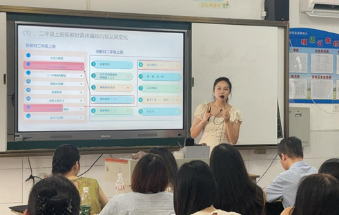 语文、道法专场,吴珍老师结合带“问题班级”逆袭的实践,聚焦低段语文教学核心。她提出以“预习六部法”培养预习习惯,借规范要求与书法课程抓书写,用“课前三分钟领读”培养听课习惯;以课堂仿写、阅读打卡、读书笔记积累提升阅读写作能力。刘婷老师围绕二年级语文新教材修订要点展开深度分享。她指出教材从四方面优化:一是删减难理解课文、调整单元内容降低难度;二是新增“体会句子语气”“学习默读”等语文要素;三是整合识字栏目、创设生活化语境;四是明确注音体例,新增全文不注音课文培养自主阅读能力。王珊琳老师聚焦道德与法治新教材展开专项解读,为低中段教学提供核心指引。并结合低中段学生认知特点,提出简化教学环节、链接真实生活、采用鼓励式评价等落地建议,帮助教师精准把握教材育人目标,为新学期道德与法治课程高效开展筑牢基础。 ![]() ![]() ![]() 数学、科学专场,刘懿老师结合数学教学实践,分享三大核心教学策略。强调精细备课是基础,需深挖教材、补充典型例题,参考名师课堂调整教学方案,反复优化教学思路,让学生从“被动听”转为“主动做、主动说、主动问”。黎雪娜老师围绕二、三年级上册数学新教材展开深度解读,重点对比新旧教材内容调整,梳理教学衔接要点,指出新教材贴合学生认知规律调整单元结构,增设跨学科实践活动。廖慧伦老师解读了2025年科学新教材改革要点。新教材以新课标为指导,采用大单元建构内容,凸显探究实践与科学思维培养,融入中国元素与科技史内容。 ![]() ![]() ![]() 英语专场,秦琛淳老师围绕湘少版小学英语新教材展开专项解读,为教师精准把握教学要点提供核心指引。她从新课标“育人为本、素养为重”的理念出发,详解教材编写思路:融入重大主题教育,强化育人功能;以主题引领单元整体教学,构建连贯知识体系;设计“学思用创结合”的活动,推动语言能力与思维发展。 ![]() 此次培训内容丰富、针对性强,涵盖多学科教学的重点与难点,为该校教师搭建了交流学习的平台。参训教师认真聆听、积极记录重点内容,纷纷表示对新教材有了更深入的理解,掌握了更多实用的教学方法。 来源:湖南民生在线