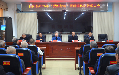 10月28日上午,桂阳县2025年“爱烛行动”慰问退休教师大会在县教育局二楼会议室隆重举行。县教育基金会领导陈瑞琳、李德忠、周泽飞,县教育局总督学骆国平,县退休教师协会理事长彭桂阳出席会议,与55位受助退休教师及家属代表共话尊师深情。