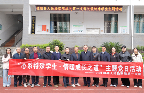 2025年11月17日,初冬暖阳洒进桂阳县特殊教育学校,一场以“心系特殊学生·情暖成长之道”为主题的党日活动在此温情启幕。桂阳县检察院第一党支部全体党员整装而来,带着法律的温度、社会的温度、人心的温度,为这里的“向阳花”们送来一场“法治+陪伴”的双重守护。