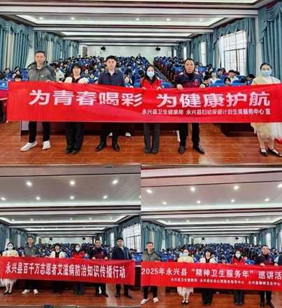2025年11月26日下午,湖南省永兴三中大会议室座无虚席,一场以"护航青春安全,守护心理健康"为主题的综合宣讲活动在此举行。本次活动由永兴县教育局、县卫生健康局、县禁毒办联合主办,共青团永兴县委、县疾控中心等部门单位协办。永兴三中200名高中学生到场聆听。