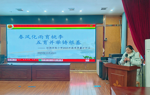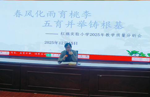 12月15日,永兴县红旗实验小学召集全体教师召开2025学年教学质量分析会。会议围绕“五育并举,质量为核”这一主题,通过数据分析、经验分享与理念引领,凝聚共识、明确方向。