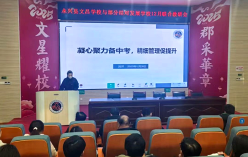 2025年12月26日下午,永兴县文昌学校携手大布江中心学校,举办了一场扎实高效、内容充实的九年级学科联合教研活动。此次活动得到永兴县教师发展中心的支持。永兴四中、七甲学校也派出教师代表来到文昌学校观摩教学并参与研讨。