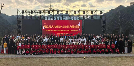 2025年12月31日下午,永兴县碧水小学组织全校教职工来到五盖山国际森林康养度假区,开展“元旦篝火传暖意·凝心聚力赴新程”庆祝元旦节暨工会文体活动,共同迎接新年的到来。