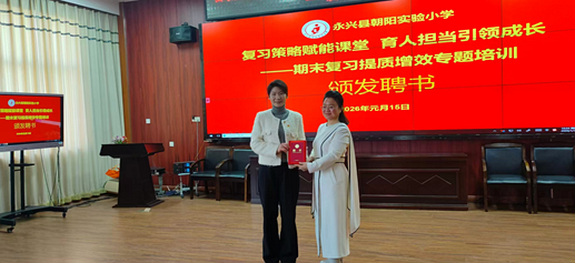 2026年1月15日上午,永兴县朝阳实验小学举办期末复习指导专题讲座活动,特邀郴州市第七完全小学党支部副书记、优秀教师潘玉来校交流指导。本次活动旨在优化期末复习策略,提升课堂效率,为教师提供实操性较强的学习平台。