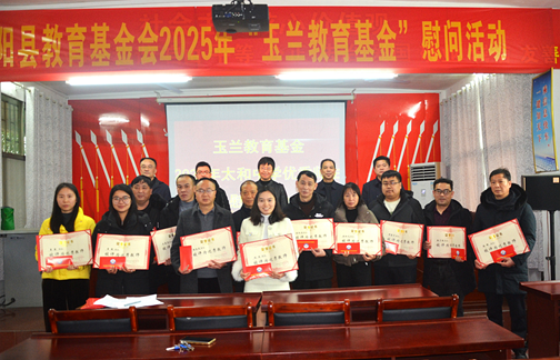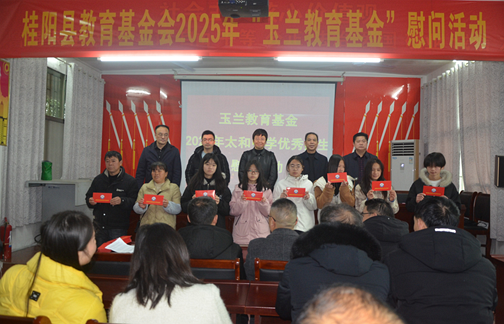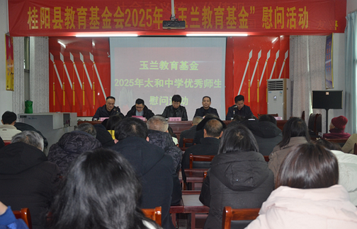 2026年1月30日上午,桂阳县教育基金会2025年“玉兰教育基金”慰问活动在太和镇中学二楼会议室举行。爱心人士代表汪晓赞,桂阳县教育基金会常务副理事长李德忠,太和镇副镇长邓海涛,太和镇专项教育基金办公室主任徐鸿俊,太和镇中学党支部书记、校长陈瑞红及全体教师、获奖学生参加活动。