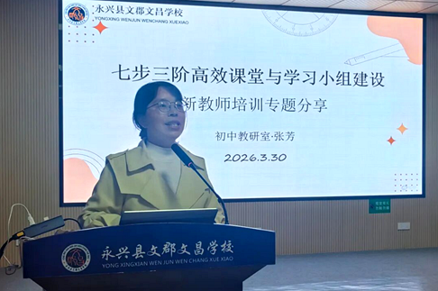 3月30日晚,永兴县文郡文昌学校“2026年上期师徒结对暨新教师培训”在该校文实楼一楼多功能厅举行。本次活动以“赋能新师、提质增效”为核心,从师徒结对到专题分享,再到问题诊断与领导寄语,为该校全体新进教师铺就了一条清晰的成长路径。
