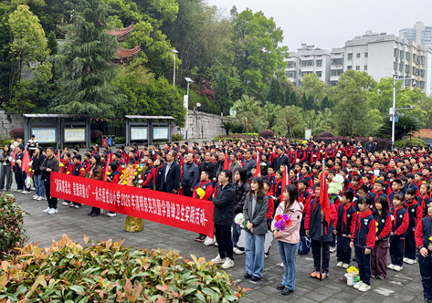 2026年4月1日,永兴县龙山小学五年级全体师生在党支部书记、校长雷海波等校领导的带领下,走进人民公园,开展“清风寄思念,美德润童心”清明祭英烈暨学雷锋卫生实践活动。