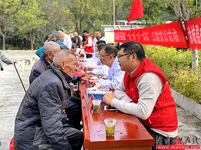 测血压、做心电图、用药咨询、发放健康资料…… 各项服务有条不紊。驻村领导胡志成穿梭在人群中,时不时停下脚步和老人拉家常。“小胡啊,今年这活动比往年还周到,连中药香包都准备好了。” 八十多岁的罗大爷拉着他的手,语气里满是欣慰。胡志成笑着回应:“您放心,只要大家需要,我们一年会比一年办得好。”