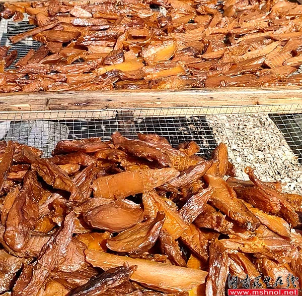 周鑫18岁走出大山赴广州打拼,从服装店员成长为服装厂老板。2014 年,随着安化黑茶复兴,客户对她爷爷手工制作的茶叶、黄精及农家干菜的追捧,让她看到家乡物产的潜力。不顾亲友反对,她卖掉服装厂,带着全部积蓄返乡,创办“竹鑫茶业公司”,集种植、加工、销售于一体,主打三大核心产品。 创业初期,周鑫从零学起,跟着老把式制作黑茶,优化黄精种植与炮制工艺,坚持农家干菜自然晾晒,跑遍全国展会拓展市场。 如今,企业年销售额从 2015 年的50万元,增长至2022年的600万元,到2025年700多万元,还带动当地 50 余户农户就业增收。 ![]() ![]() ▲ 周鑫和员工在海拔千米的芙蓉山上采茶