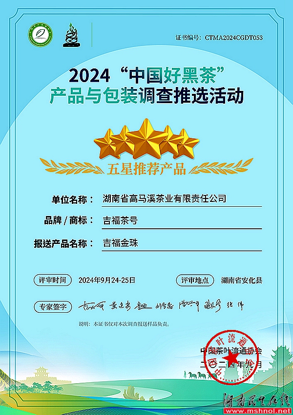 作为茶号第六代传人,湖南吉福茶号茶业有限公司董事长陈凯先生承载着家族的制茶使命与文化责任。凭借高级经济师、高级评茶师的专业素养,以及对茶文化的深刻理解,他带领“吉福茶号”完成了从传统手工作坊到现代化企业的转型。如今的“吉福茶号”,已发展成为集茶叶种植、生产加工、产品销售、科研开发、茶文化传播于一体的综合性茶业品牌,先后斩获“国家高新技术企业”“湖南省专精特新‘小巨人’企业”“湖南省创新型中小企业”“湖南老字号”等多项重量级资质。 百年传承中,“吉福茶号”始终坚守“品质为本” 的初心。企业累计获得16项产品、包装国家专利,18 项产品在全国各类评选中摘得金奖,“湖南诚信企业”“魅力企业”“知名品牌”等荣誉接踵而至。2024 年,核心产品“吉福金珠”在全国黑茶大会上获评“五星级中国好黑茶”,为此次获得国际商务联盟认证奠定了坚实基础。近两百年的风雨历程中,“吉福茶号”以六代人的坚守,铸就了“诚信、匠心、创新”的品牌内核,成为安化黑茶产业的标杆企业。 ![]() ![]()
